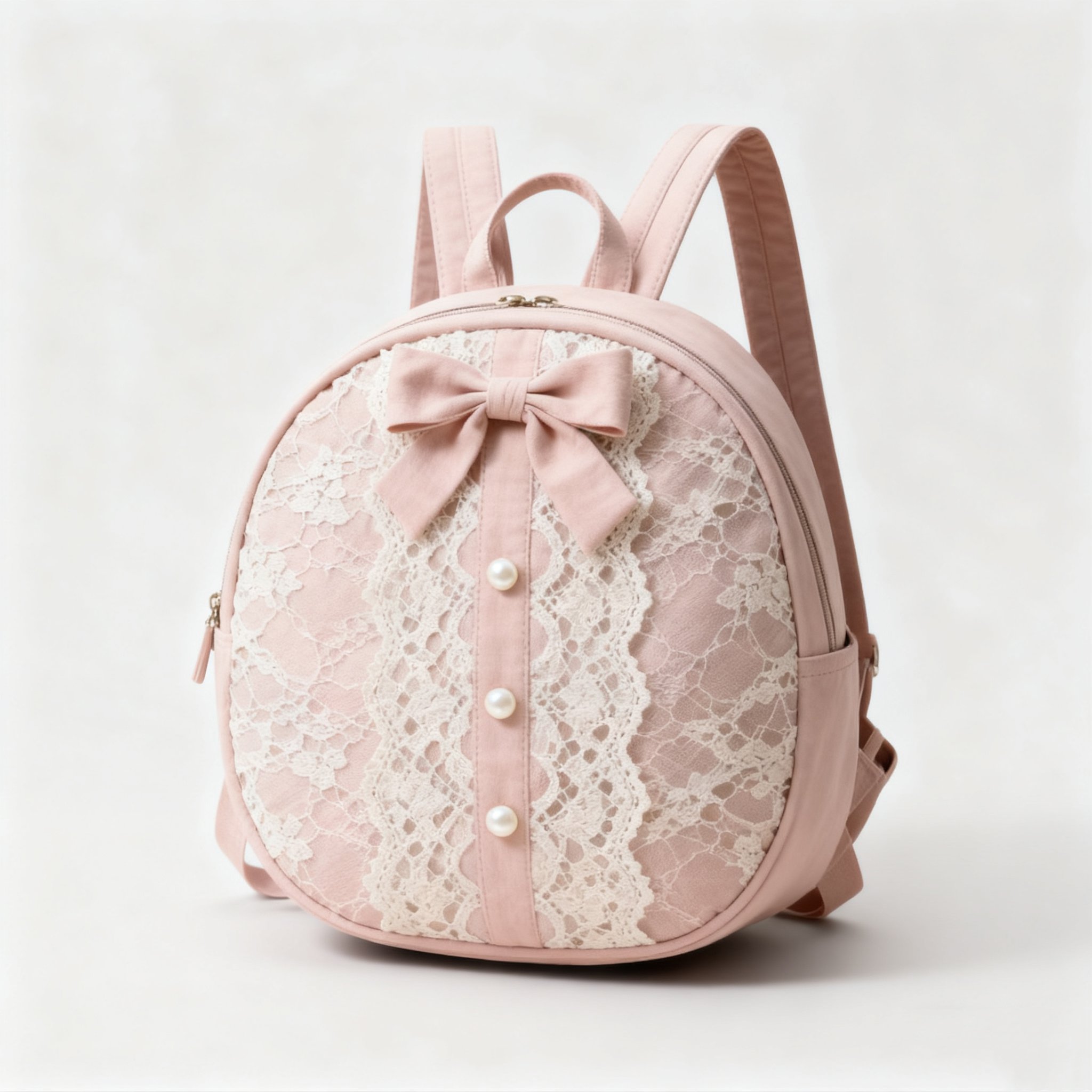 เป้สะพายหลังผู้หญิงลูกไม้สีชมพู